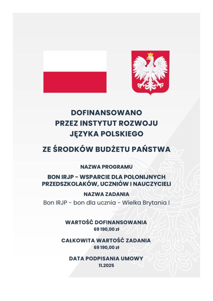 Nazwa zadania publicznego: Wsparcie nauczania języka polskiego za granicą szkół na terenie Wielkiej Brytanii (5)